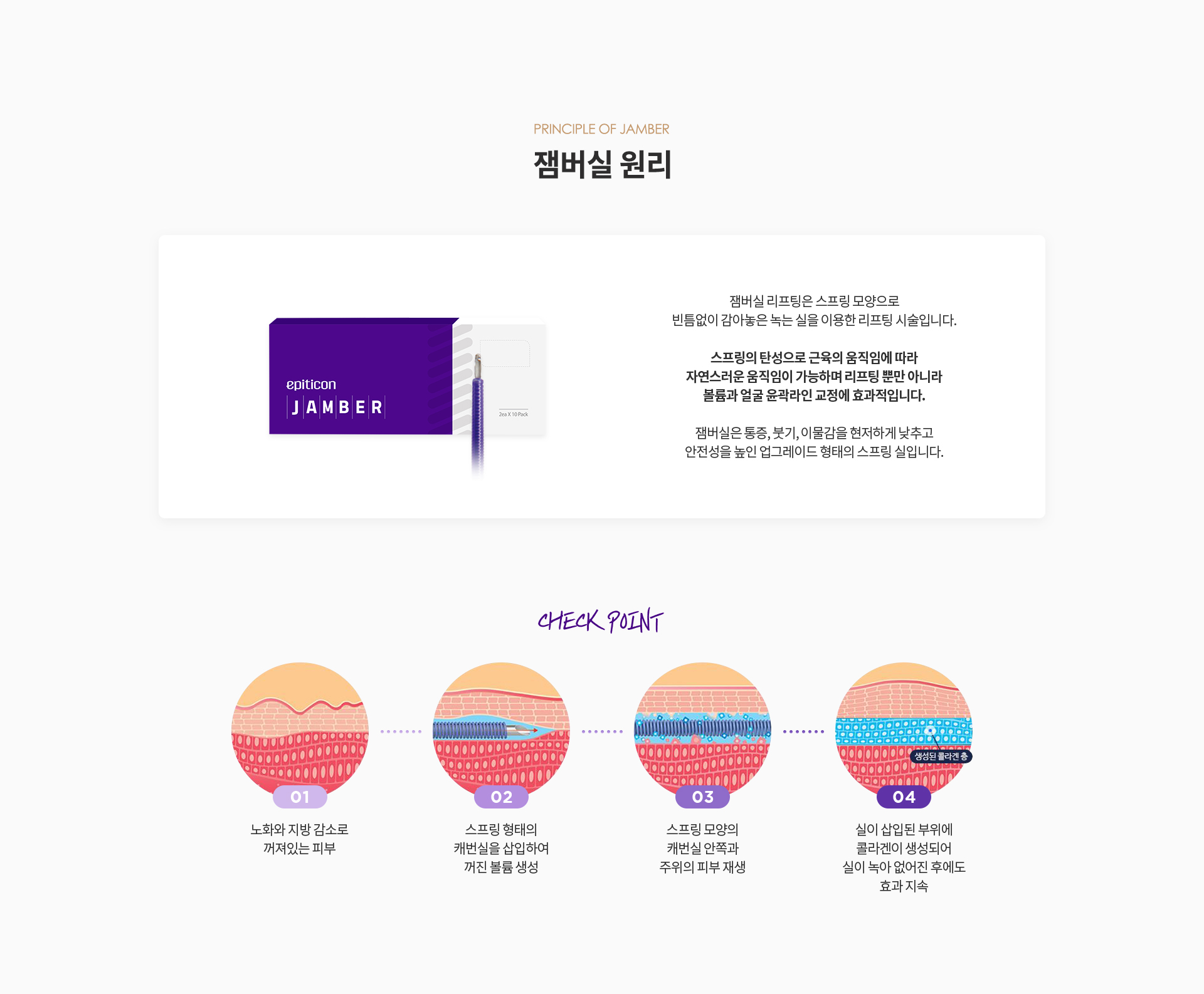 잼버실 리프팅은 스프링 모양으로 빈틈없이 감아놓은 녹는 실을 이용한 리프팅 시술입니다.